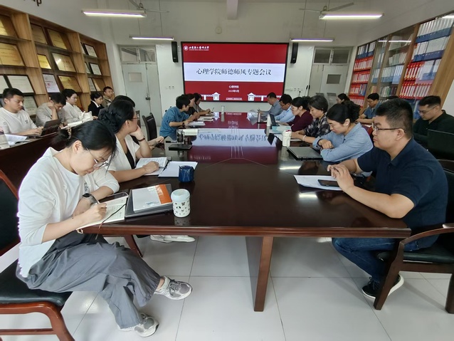 为持续深入学习贯彻习近平总书记关于师德师风的重要指示精神,结合学校师德建设月要求,近日,心理学院召开师德师风专题会议。学院党总支书记李洪先、院长王艳郁、副书记田桂香及全体教师参加会议。 此次会议,进一步强化教师的理想信念,巩固和拓展师德师风学习教育成效,深化全体教师对新时代教师职业行为准则和优良师德师风内涵的理解,广泛凝聚育人共识,为学院各项事业在新时代实现高质量的发展奠定坚实的思想基础。 会上,李洪先强调全体教师要提高政治站位,压实主体责任,筑牢思想防线,严守职业道德规范;要始终坚守为党育人、为国育才的初心使命,努力践行“学高为师,身正为范”的行为准则。王艳郁强调全体教职工要恪守学术道德,弘扬科研诚信,将自律意识贯穿于学术活动的全过程,共同维护风清气正、积极向上的学术生态。 会议还组织全体教职工集中观看了《在第41个教师节来临之际习近平总书记给全国特岗教师代表的回信》《生命至上——齐鲁时代楷模张军桥同志事迹宣传片》等专题教育视频,号召教师们深刻感悟立德树人的光荣使命与责任担当,汲取无私奉献、爱岗敬业的榜样力量;传达校纪委发布的《关于严明国庆、中秋节日期间廉洁纪律的通知》,以及剖析教育部曝光的7起违反教师职业行为十项准则的典型案例,进行警示教育,强化以案为鉴,警钟长鸣。