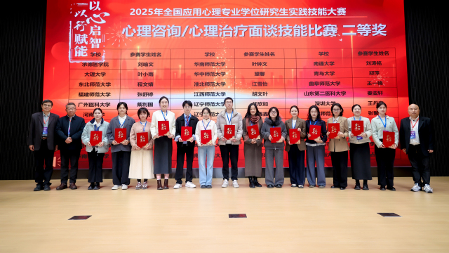 近日,由中国学位与研究生教育学会应用心理专业学位工作委员会主办的2025年全国应用心理专业学位研究生实践技能大赛全国决赛在上海华东师范大学圆满落幕,我校学生再创佳绩,获两项国家级二等奖。