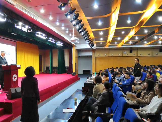 会上,封磊作了题为《Can Dementia be Prevented?》的报告,他结合自己的主要研究课题失智症的预防,介绍了国内外失智症的预防、治疗方面的前沿进展情况及个人科研团队开展的预防失智症的干预方法,并回答了师生们关于预防失智症方面的相关问题,现场讨论热烈,拓展了师生们研究预防失智症领域的科研思路。