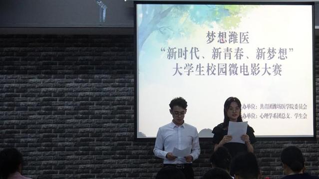 5月30日晚,由共青团潍坊医学院委员会主办,心理学系团总支、学生会承办的梦想潍医“新时代 新青春 新梦想”大学生青春励志微电影大赛于济世书院创新创业实训中心举行。