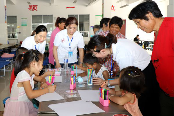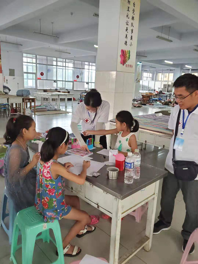 援助现场,心理援助团队跟参与寿光抗灾救灾与恢复重建协作平台负责人进行对接,了解了本次洪涝灾害的情况及特点,重点对在营里中小学校安置点里的老人、儿童、第二次受灾群众展开心理援助。大家为灾区儿童带去了彩色画笔、绘画纸、气球等物品,陪同孩子们画画、吹气球、做大风吹、小风吹等亲子游戏,现场不时传来孩子们童铃般的笑声,稚嫩的脸上露出天真的笑容。心理援助人员还分别跟老年人聊天,了解他们的想法,倾听他们的心声,根据每个人的心理特点开展针对性的心理抚慰,同时,还为灾民发放了灾后亲子心理自助手册和灾后公众心理自助手册,通过各种方式解除灾民的心理忧虑。