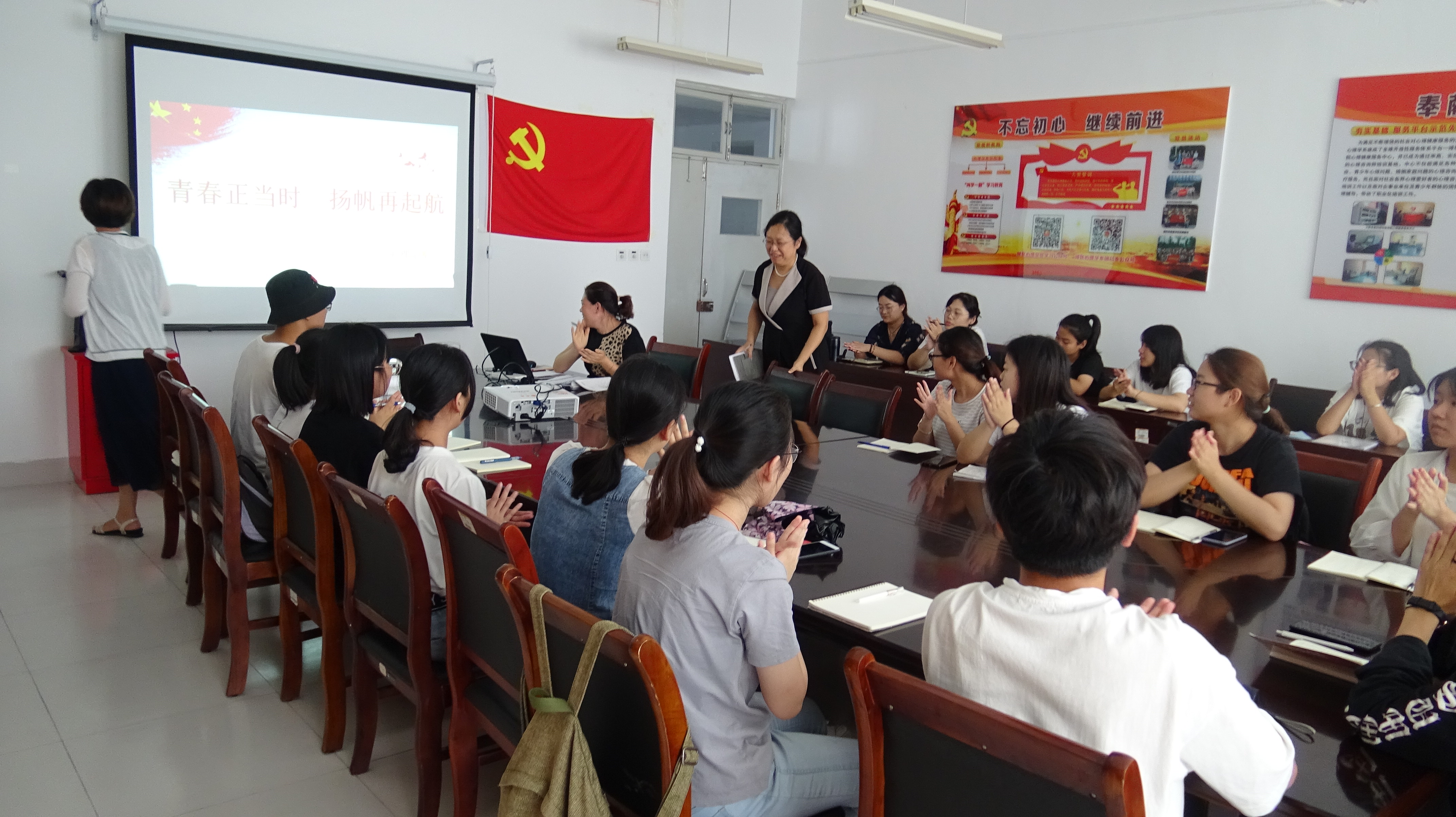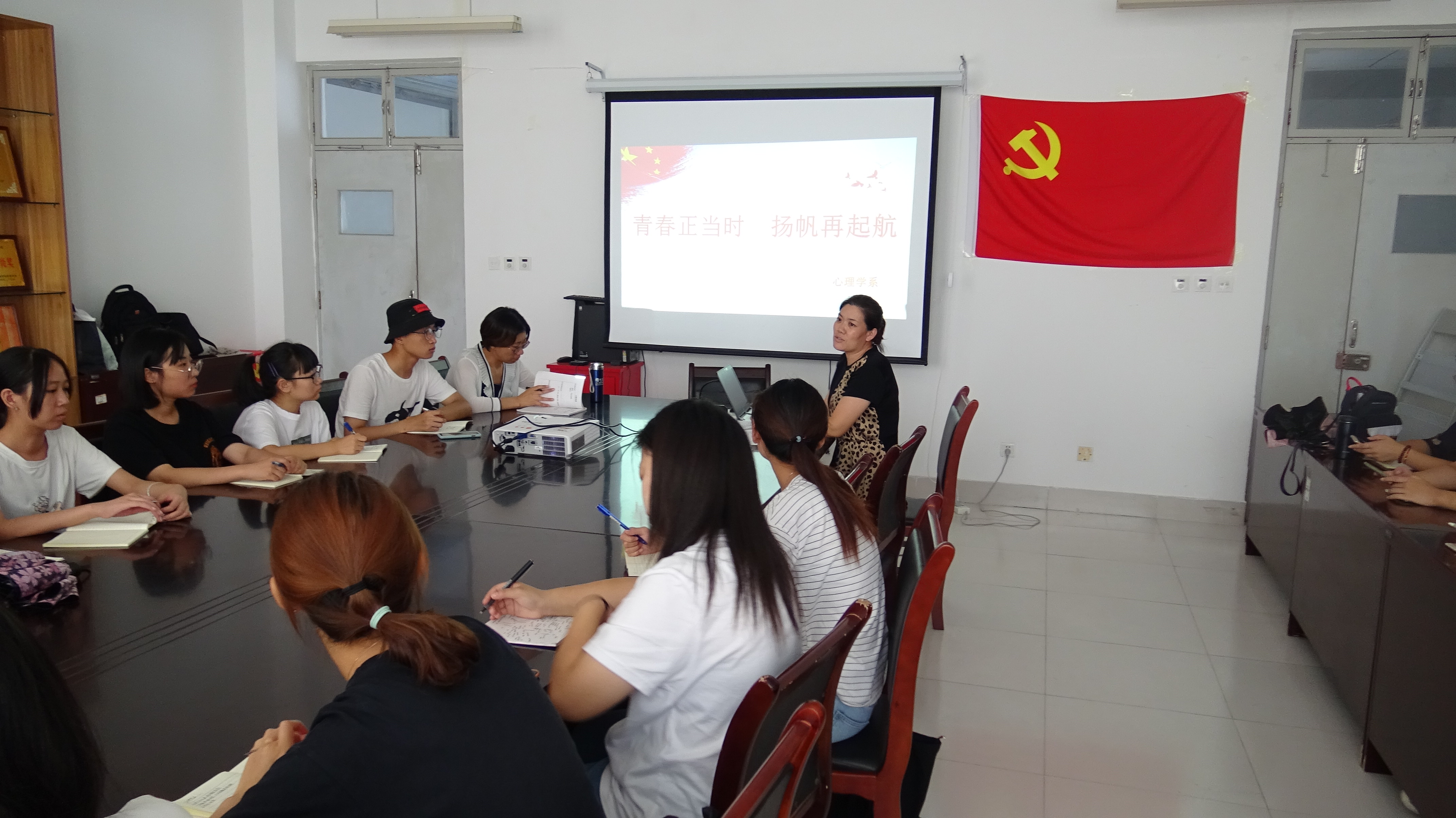 9月3日上午,心理学系开展“青春正当时 扬帆再起航”主题活动,心理学系党总支副书记朱红、心理学系辅导员及主要学生干部参加。