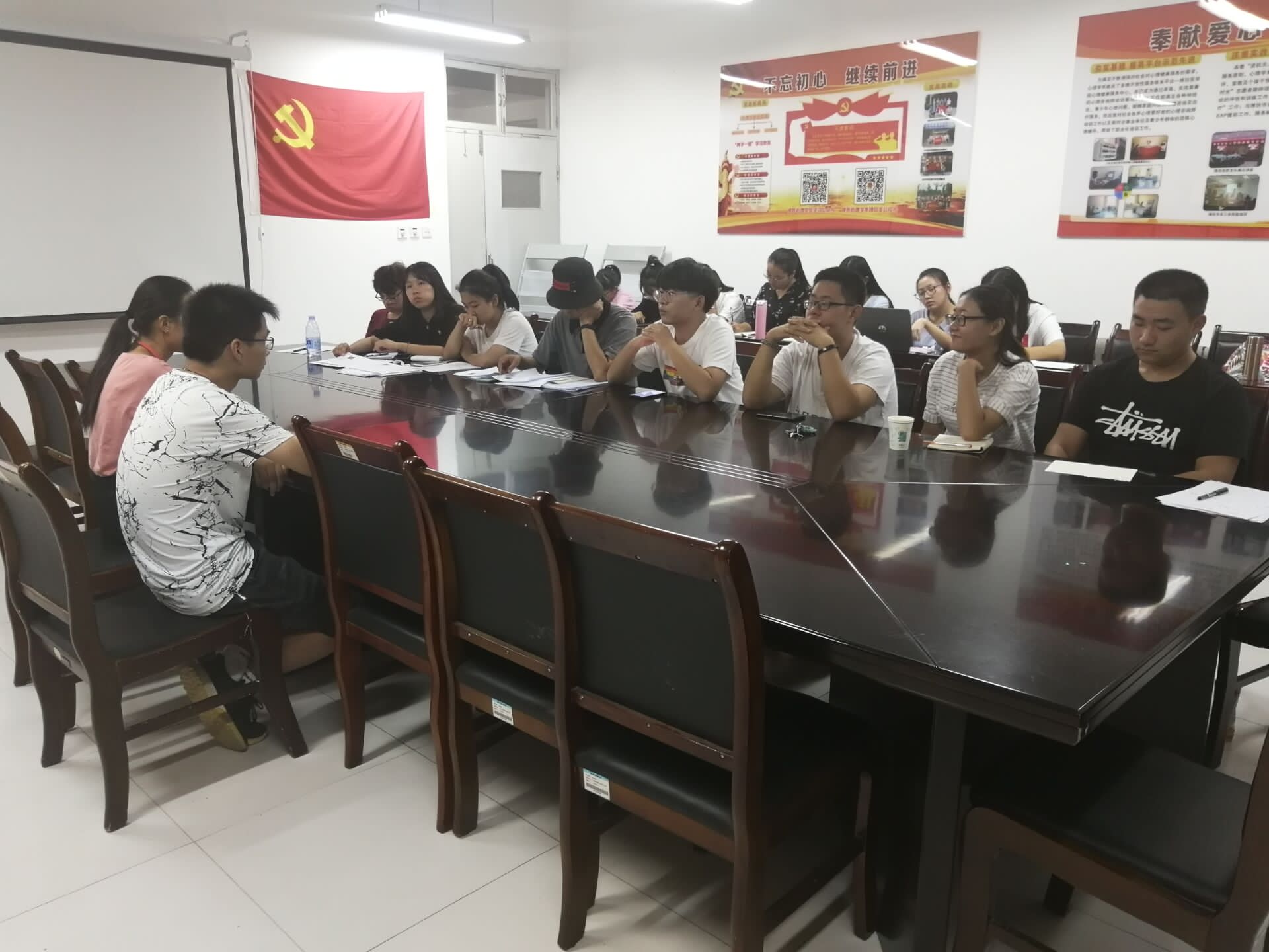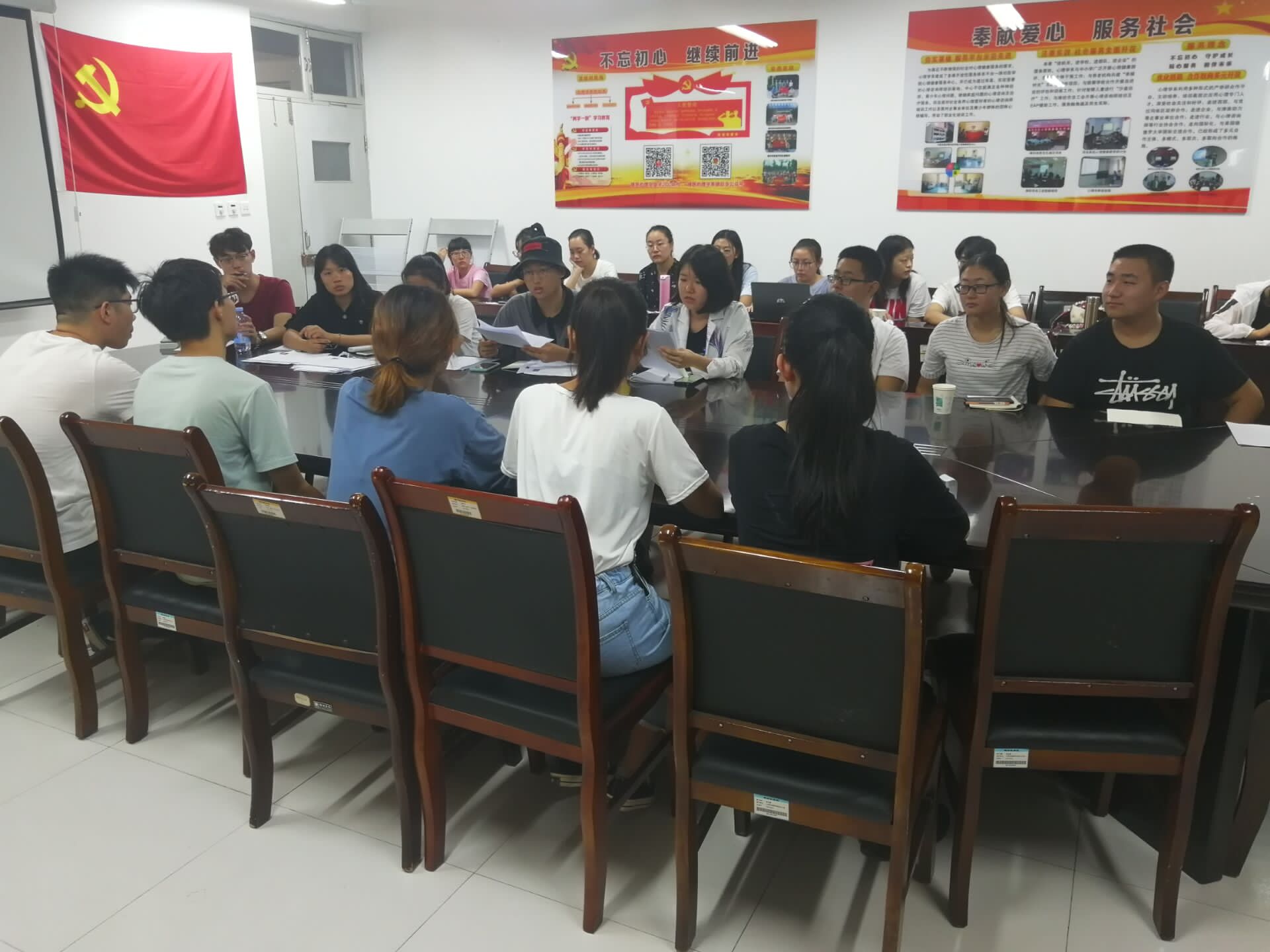 9月8日晚,心理学系于学生工作会议室召开部室换届大会。心理学系学生会14个部室和副部长竞选者参与其中。
