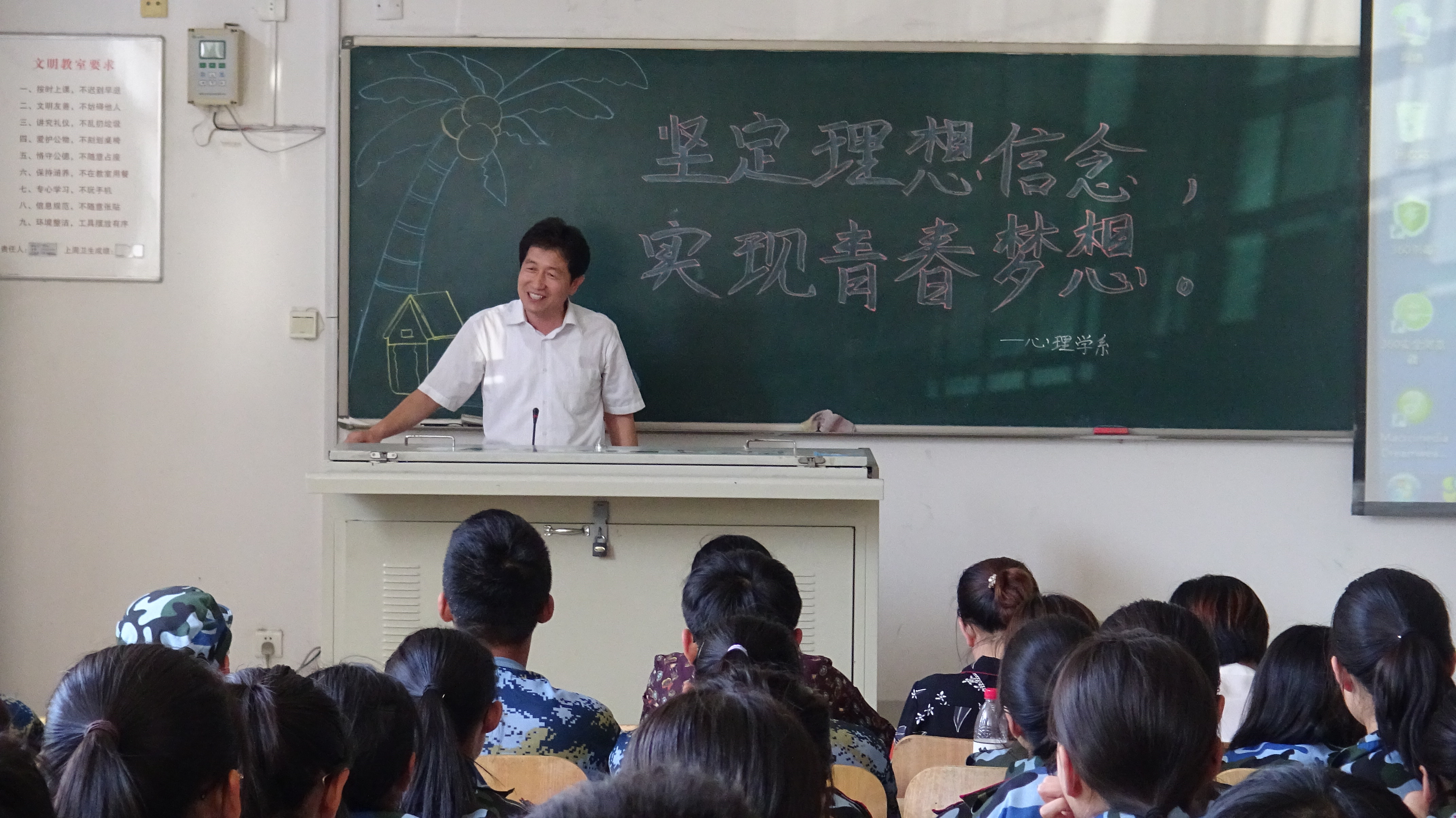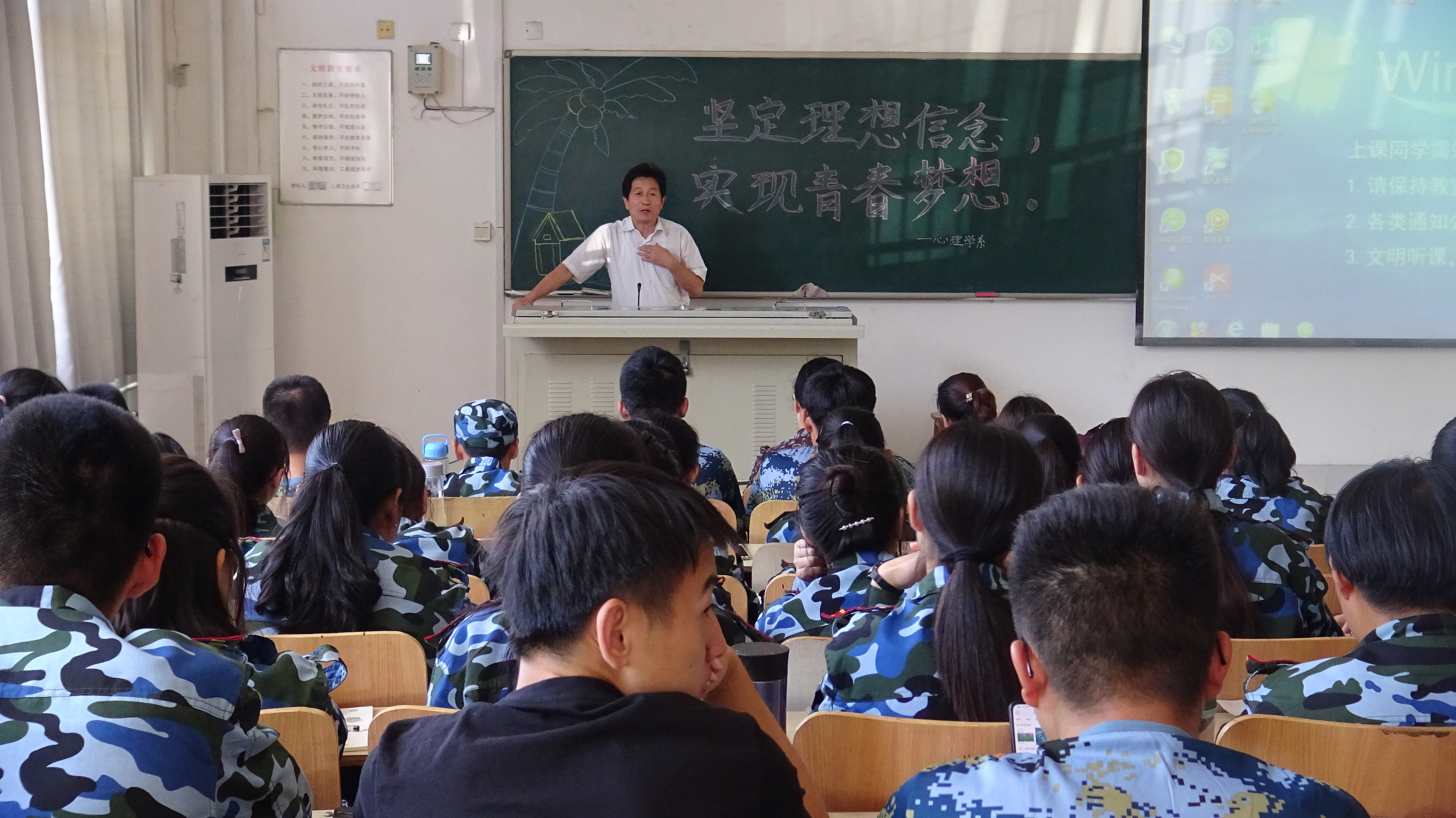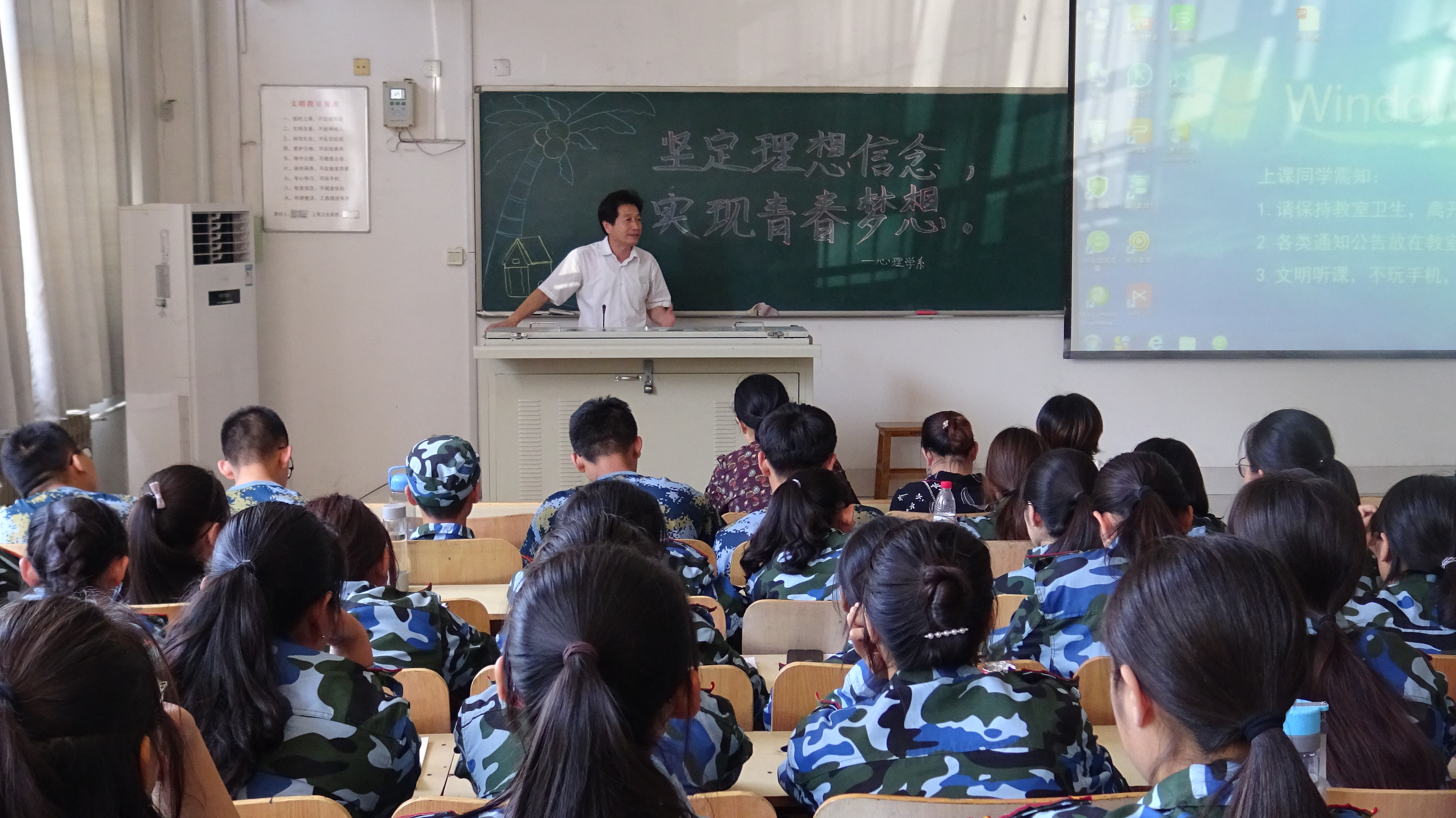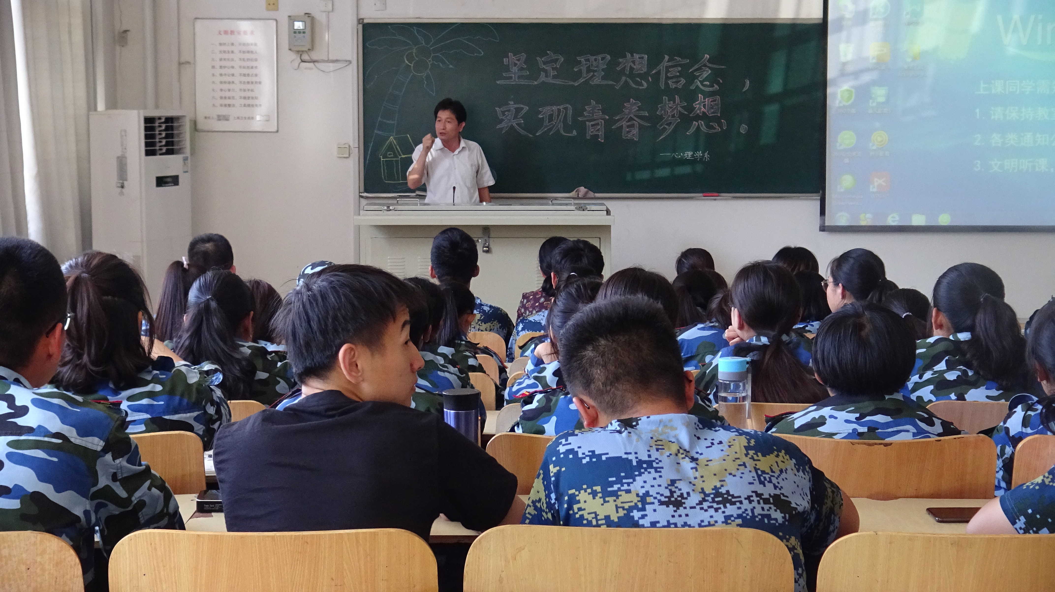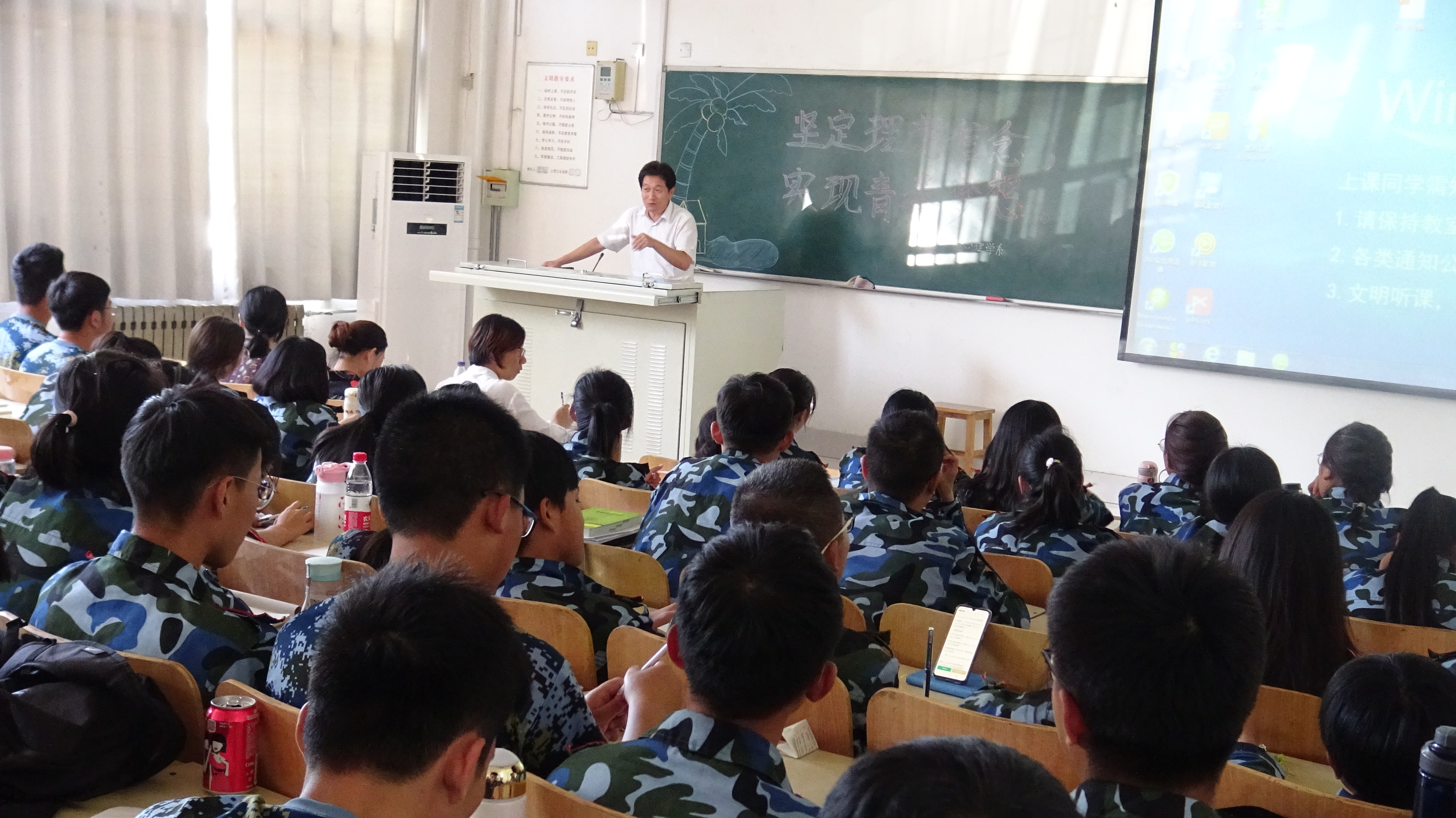 9月18日下午,心理学系于潍坊医学院浮烟山校区B204教室举办“坚定理想信念,实现青春梦想”主题报告会。心理学系党总支书记刘宪亮主讲,党总支副书记朱红、辅导员和2019级全体新生参与。