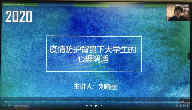 本次微视频中,刘晓丽围绕“疫情防护背景下大学生心理调适”这个主题,展开了四个方面的讲述:一是适应更加结构化的学校生活,二是心理状态对传染病的影响,三是评估自我的心理状态,四是心理调适策略。刘晓丽真诚的态度、亲切的语言、实用的指导,真正懂得学生们返校后的焦虑与困惑,通过一个个有所共鸣的情景和案例,深入浅出地分析了学生们当前的心理和生理特点,让学生们有所反思,并帮助学生们调整心理状态,可以尽快适应校园生活。