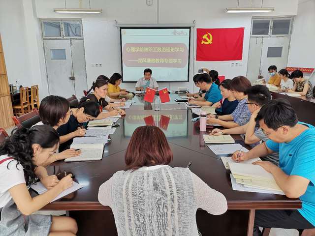 7月17日下午,心理学院在会议室开展党风廉政教育专题学习活动,心理学院党总支书记刘宪亮主持,全体教师党员参加。